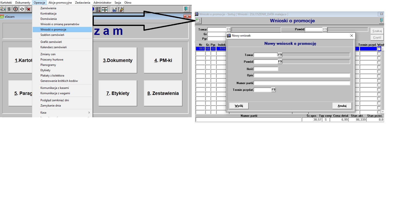 Sezam--> Operacje --> Wnioski o promocje